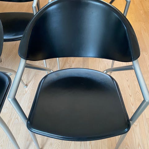 6 stk egetræ med grå stof. Med brugsspor -IKKE forsøgt renset.