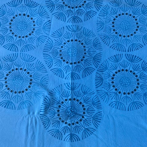 Smuk stykke stof eller dug med applikationer og broderier også i elfenbensfarvet. Stoffet er lidt blankt og polyester.