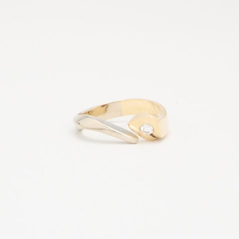 Unik diamantring i 14 karat guld med hvidgulds detalje.