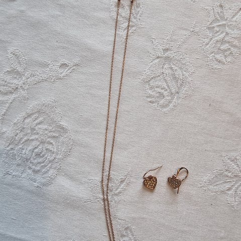 Pilgrim halskæde og øreringe med indlagte sten. Brugt 1 gang.