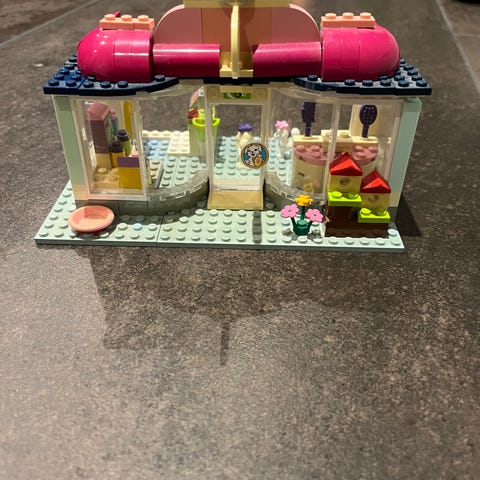 Bygget LEGO Friends dyresalon inkl. figurer og små dyre-tilbehør. Super sødt sæt for dyreelskere.
