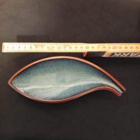 Stort vintage fad / frugtfad, diameter 25,5 cm, højde 5 cm, i gul / brune nuancer. Micro hak i bund udvendigt, ses ikke.