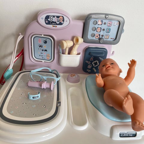 Supermarked fra Smoby med masse spændende funktioner. Det har et skilt med butikkens åbningstider. Supermarkedet har mange opbevaringsstativer og hylder. Stregkodescanner med lyd og lys.