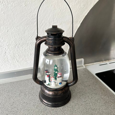 Smuk og stor snekugle/lanterne sælges! Den har 2 indstillinger. En med lys og musik og en kun med lys. Den er ca 28 cm høj uden håndtaget og ca 22 bred. Den er blevet passet godt på, så standen er flot!