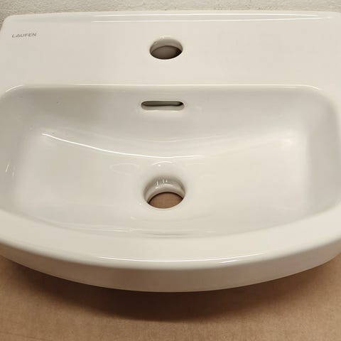 Ifö Spira hvid håndvask bredde 50 cm x dybde 36 cm, buet forkant ti vægmontering incl beslag
