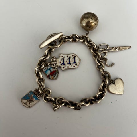 Armbånd, sølv, ankerkæde, guldhjertet er fjernet.....