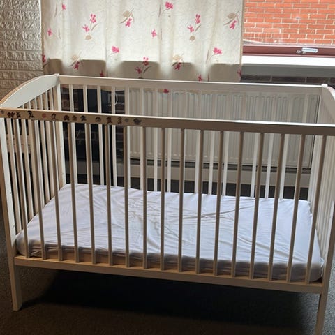 BabyDan børnemøbler i hvidt træ bestående af flere dele med puslebord. Møblerne er designet til børn og er lavet af træmateriale.