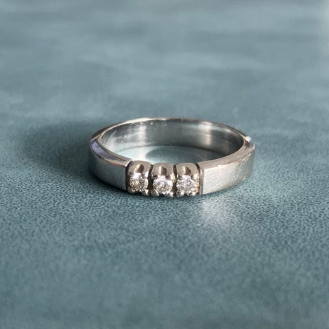 Flot diamantring i 14 karat guld med rosaguld detalje.