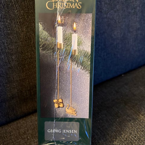 Georg Jensen julepynt i hvid forgyldt, ladventslysholdere, topstjerner, julepynt og ophæng. Produkterne er i originalæsker, undtagen misteltenen. Velegnet til juleudsmykning og dekoration af hjemmet.