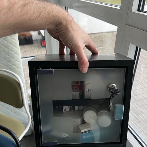 Tidligere brugt til at opbevare medicin i men kan bruges som personale skabe osv.