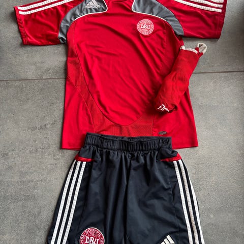 Sælger helt nyt og ubrugt sæt til barn (landsholdstrøje og bukser) i str. 68 (4-6 mdr.).