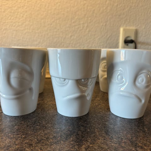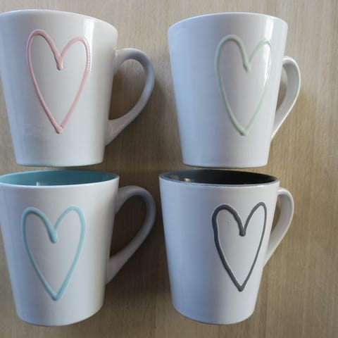 4 krus, hvide, standen er som nye, prisen er pr stk, kan sendes, køber betaler fragt