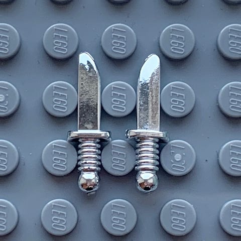 Fine små LEGO harpuner / våben i farven Chrome Silver. Flot stand: Intakt sølvkrom og ser nærmest ud som nye ✨🙏🏼