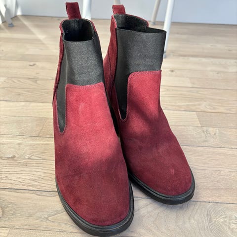 I god stand og er brugt få gange. Sort farve. Material ligner ruskind og måske er ægte ruskind.
