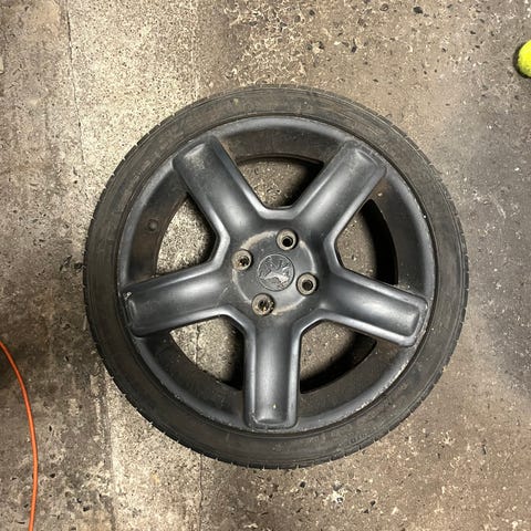 4 stk 13" fælge med meget dårlige dæk til Peugeot 205