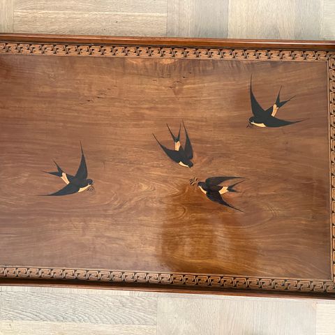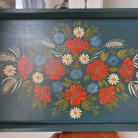 Stor træbakke fra Wiggers med håndmalet blomstermotiv.