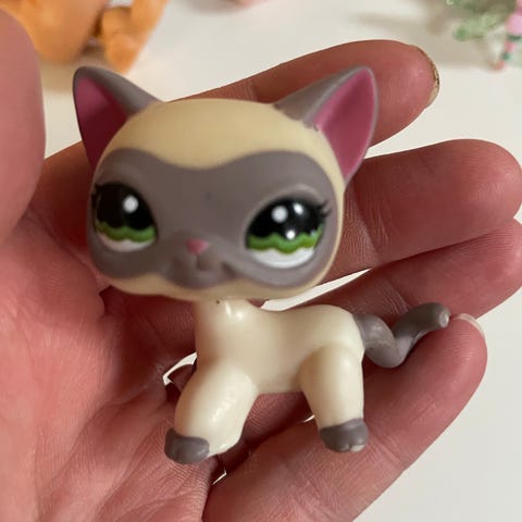 Littlest Pet Shop Kattefigur i brun farve lavet af plastik. Figuren er lille og håndholdt, egnet til samling eller leg.