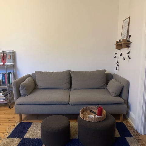 Super fin sofa - et par år gammel og den ene lynlås til hynden er gået lidt løs. Med “velour” betræk i beige fra Bemz (betrækket trænger til en vask)