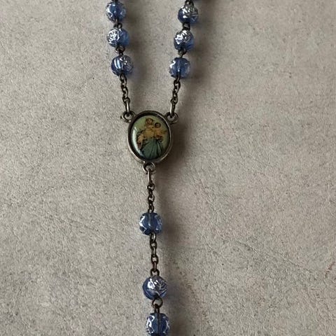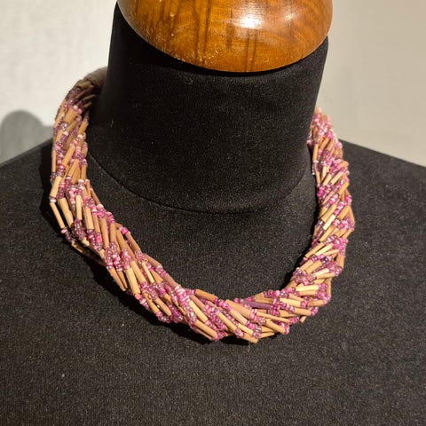 Købt i udlandet. Længde 90 cm. Lyse/gennemsigtige perler.