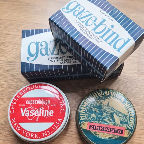 Meget gammel lille blik æske med teksten" Prima Sikkerhedsnaale, Faas kun hos H. Blichfeldt, Flensborg Lageruddalg, Esbjerg." Okkergul forside og lys gul bagside, begge med sort tekst og guld bogstaver.
