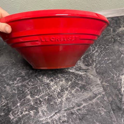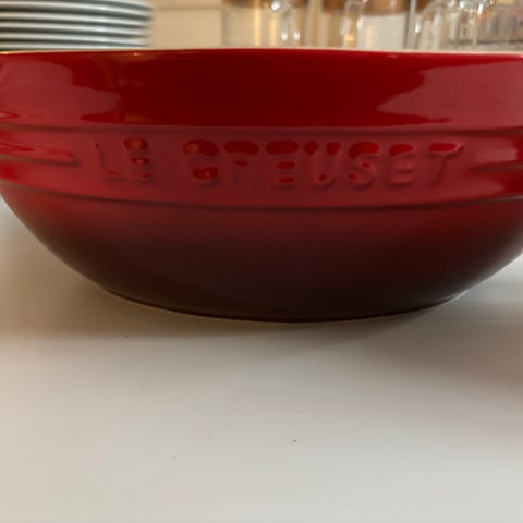 Le Creuset skål i rød emalje. Kan også bruges til slik skåle eller