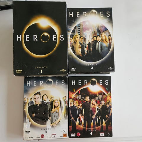 Heroes. Sæson 1 disk 1 til 7. Sæson 2 disk 1 til 4. Sæson 3 disk 1 til 6. Sæson 4 disk 1 til 5. Sælges kun samlet. Heroes