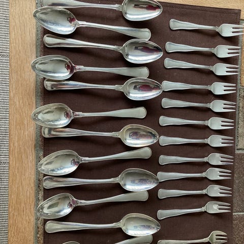 Haves en del antikt bestik i sølv / plet - af ældre dato fra en svunden tid.