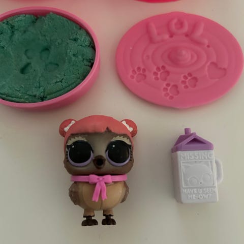 L.O.L. Surprise Fluffy Pets legetøj inkluderer en lille dyrefigur med tilbehør såsom briller, sko, en flaske og en transportkasse. Figuren er designet til børn og er en del af L.O.L. Surprise-serien med fokus på kæledyr.