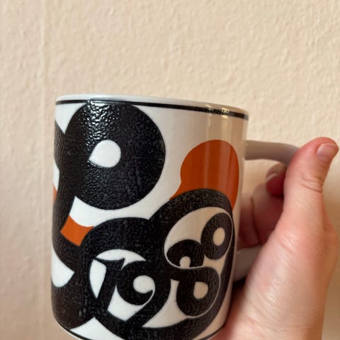 Royal Copenhagen Jubilæums Krus i keramik med årstallene 1982, 1983 og 1984. Krusene har dekorative motiver i brunt, svart og oransje. Passer til samling eller bruk som drikkekrus.