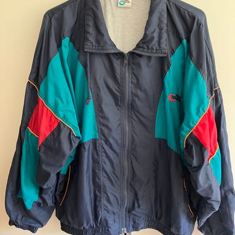 Sort sportstrøje med hætte og to lommer og lynlås. Længde fra skulder 60 cm, brystvidde 104 cm, ærmelængde fra skulder 72 cm, kun brugt meget lidt