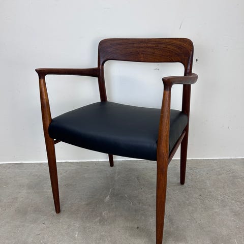 Niels o Møller armstol model 56 i teak med sæde i sort anilin læder fra Arne Sørensen