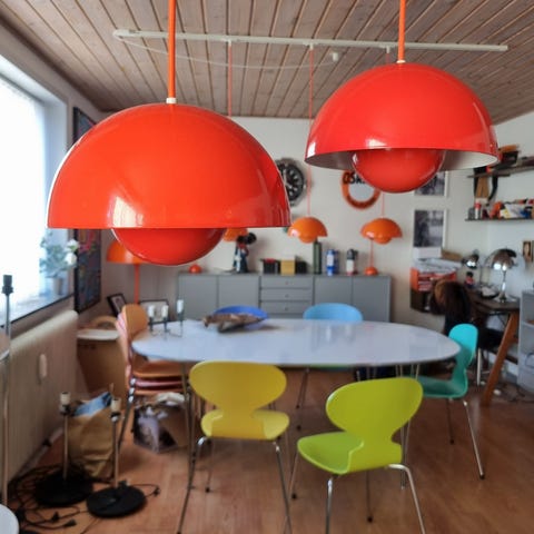 Originale Verner Panton Jeka Verona/Flowerpot VP1 nr. 209603 den første creme-hvide farve 1968-1970. Sjælden creme-hvid emalje. Original stand ingen buler eller skrammer. Made in Denmark se original label.