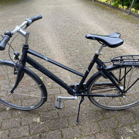 Crescent Flyer Andre cykel i blågrå farve, størrelse XL-580 mm. Designet til unisex brug. Cyklen vejer cirka 18 kg og leveres i original emballage. Der er ingen gear på cyklen. Cyklen er fabriks ny.