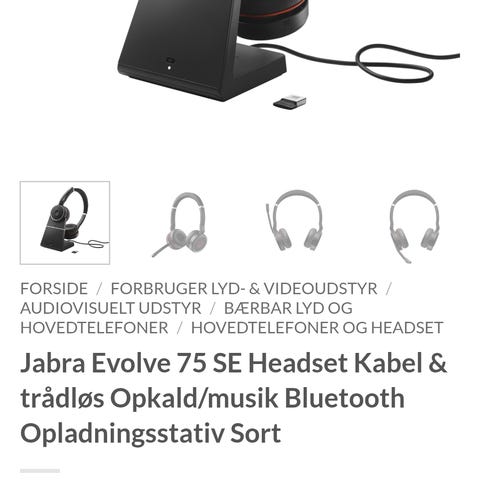 Rigtig fin Jabra headset med laderstand.