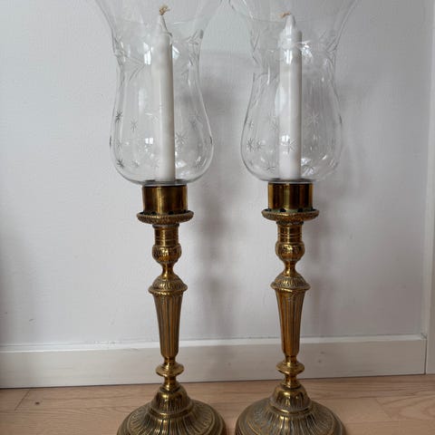 Helt intakt og meget gammel messing hurricane/lysestage.