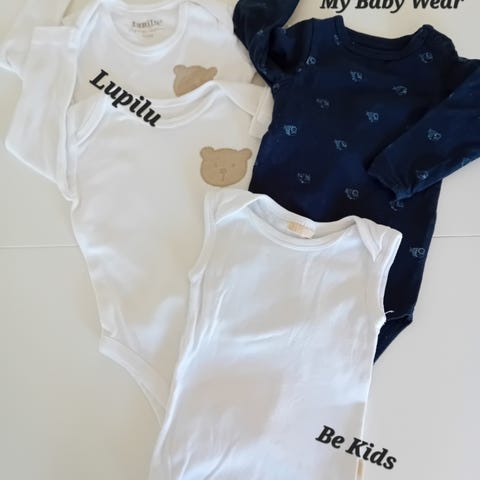4 helt nye bodyer sælges . De er aldrig brugt - kun vasket . De er i str 62-68 . De er af mærket Lupilu. De kan bruges både til pige og dreng . De sælges samlet for 60kr