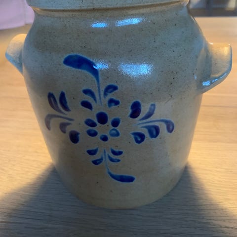 Brun stentøj krukke med glaseret overflade. Krukken har en rund form og en åben top. Den er velegnet til opbevaring eller dekoration. Krukken har en brun farve både indvendigt og udvendigt.