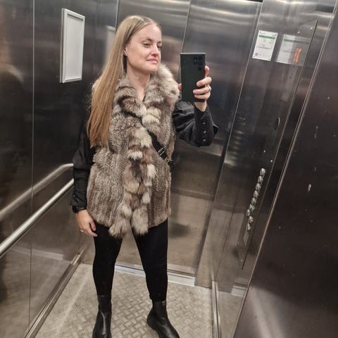 Flot kanin pelsvest i den dejligste mørkerød farve. Brugt et par gange derfor som ny. Str S.