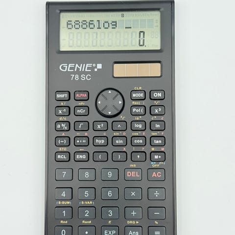 Impeca BS7848 lommeregner med dual power, der bruger både solenergi og en G10 størrelse (1,5V) batteri. En kompakt elektronisk lommeregner med standard funktioner og knapper til grundlæggende matematiske beregninger.