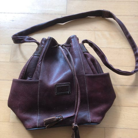 Skuldertaske, Boxca, læder, fin lille hvis skuldertaske tror det er læder blå indeni