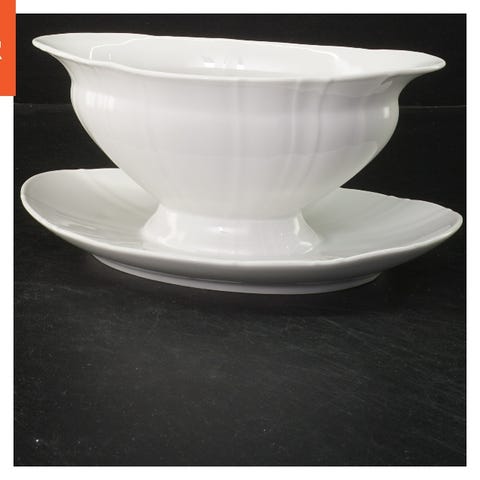 En fin sauceskål i hvidt porcelæn