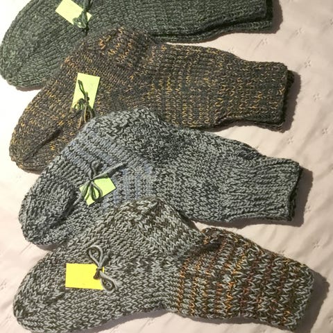 70 par hjemmestrikkede sokker i assorterede størrelser