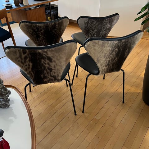 Arne Jacobsen 7eren to stk smukke stole i mørk cognac anilin læder.