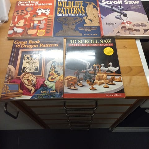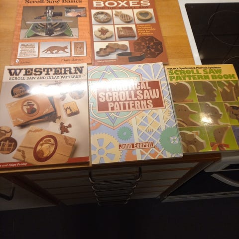 4 bøger på engelsk om dekupørsav/ scrollsaw sælges samlet.