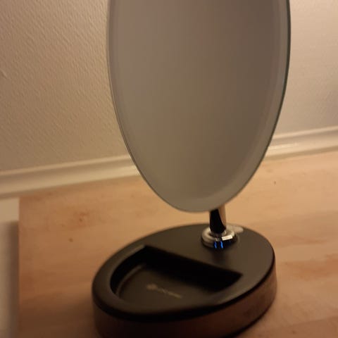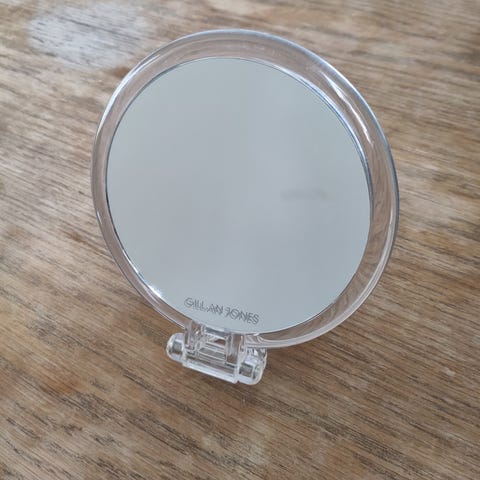 Etuiet åbnes med kugleknap og indeholder spejl indvendigt. Velegnet til taske eller rejsebrug.