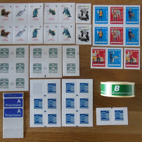 Postfriske danske frimærker – 10 øre, 50 øre, 150 øre, 2 kr. og 2,50 kr.