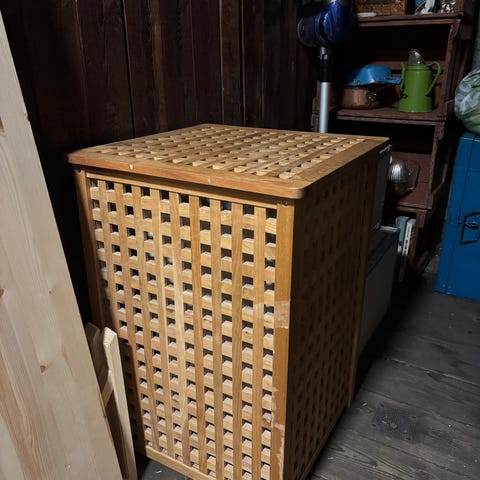 Fin triptrap vaskekurv, lidt brugsmærker men helt funktionel og elegant design, er man fiks på fingrene kan den friskes op igen.