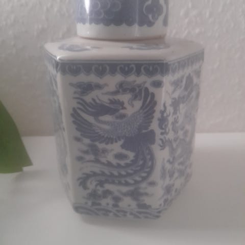Antik kinesisk blå-hvid porcelænskrukke fra Qing-dynastiet konverteret til bordlampe. Klassiske håndmalede motiver og dekorativt orientalsk design