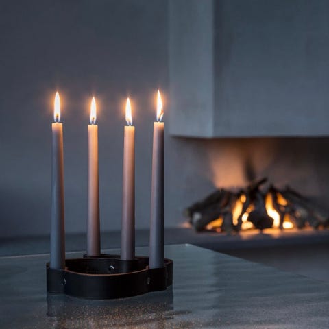 Denne skulpturelle lysestage med plads til fire lys er tidløs i sit enkle design, der er let at passe ind overalt. Den vil gøre sig lige smukt, uanset om du vælger at sætte den på bordet eller hænge den ned fra loftet i de medfølgende, aftagelige lædersnore. Det massive messing giver et moderne look, der kan bruges hele året rundt