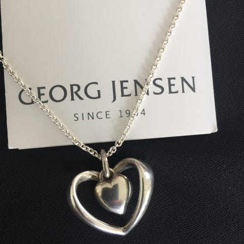 Til kvinden der har alt så er dette smykke måske sagen. Det er ihvertfald en af de smukkeste Georg Jensen halskæder. Den har original kæde og vedhænget er så tydeligt og fint stemplet med mesterstempel, altså Georg Jensen.